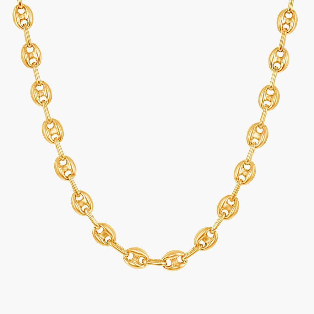 Inspired by the sun-drenched ports of Italy's coastline, our 6mm Puffed Marina Chain features a dimensional take on the nautical classic. The gold plating adds warmth to the gently rounded links, creating a piece that's both substantial and sophisticated.