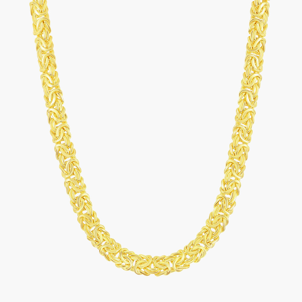 Immerse yourself in the rich history of Italian artistry with our Classic Byzantine Necklace in Gold-Plated Sterling Silver. This exquisite 17" piece pays homage to the intricate metalwork of ancient Rome, reimagined for the modern connoisseur. The complex interlocking pattern creates a luxurious, fluid drape that catches the light with every movement. This statement necklace embodies the timeless sophistication of Italian craftsmanship, perfect for elevating both everyday ensembles and evening attire with a touch of Mediterranean allure.